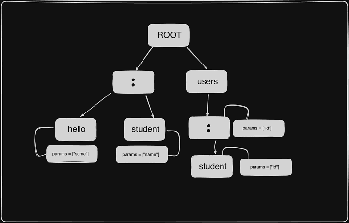 #addRoutemethod, check if a segment starts with a colon (:). If it does, treat it as a dynamic parameter and store its name in theparamsarray of the current node.Route Finding Logic: In the